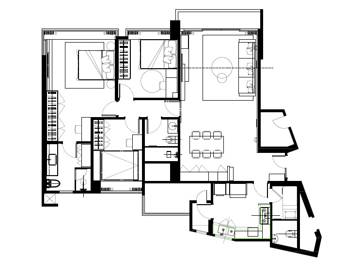開放式餐廚區延續了客廳的設計語言,大理石餐桌與客廳地面呼應,搭配玫瑰金吊燈,在簡約中透露精緻。廚房採用了隱藏式設計,將現代家電完美融入整體空間,既保持美感又不失實用性。主人套房堪稱設計亮點,床頭那面3D軟包藝術牆採用歐洲進口材質,立體紋理在燈光下呈現迷人的光影變化。步入式衣帽間的全鏡面設計不僅實用,更巧妙地擴大了視覺空間。主衛延續雲石主題,雙洗手台設計搭配玫瑰金五金件,細節處盡顯奢華。女兒房則跳脫主空間的沉穩,以Funky風格展現青春活力。一面牆鋪滿充滿童趣的幾何圖案壁紙,另一面則採用可塗鴉的烤漆玻璃面板,讓空間能隨小主人成長而變化。設計師更在角落設置了閱讀區,搭配造型獨特的燈具,打造出專屬的創意天地。