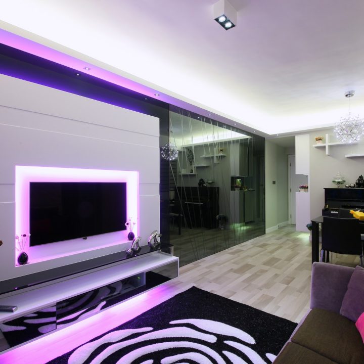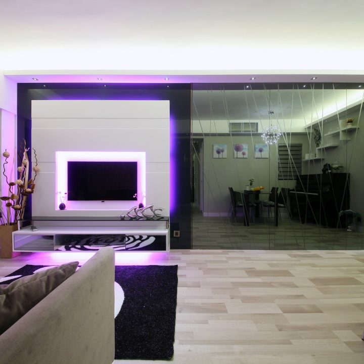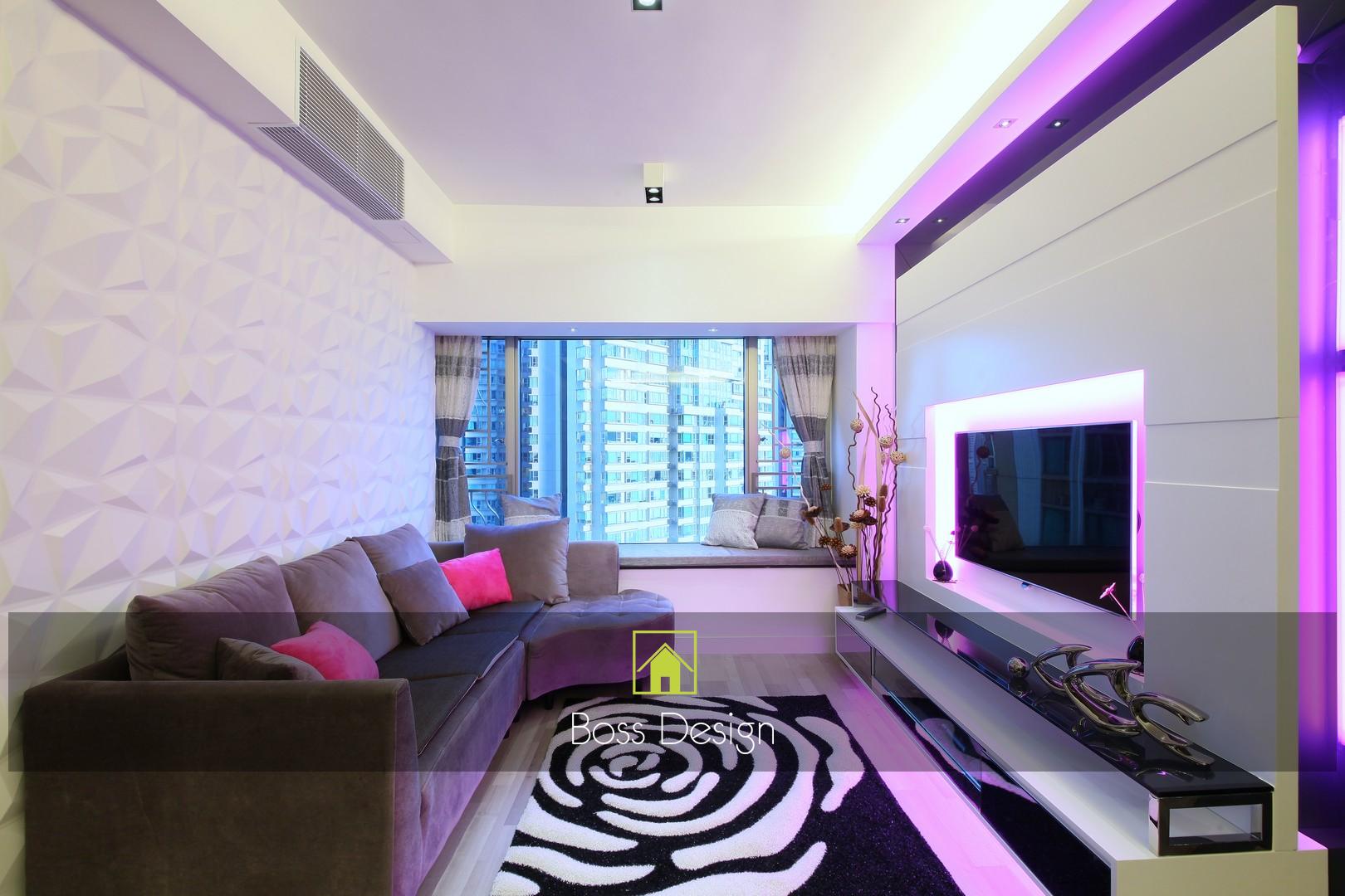 從外觀來看,胡桃木色搭配簡約白,流淌著時髦感與品質感;一字型沙發設計,美觀大方,電視櫃的紫色燈光,有一種與眾不同的空間感和設計感,使得客廳顯得既優雅又獨特。現代時尚設計,風格百搭,既能優雅又能輕奢,隨時轉變家居風格。