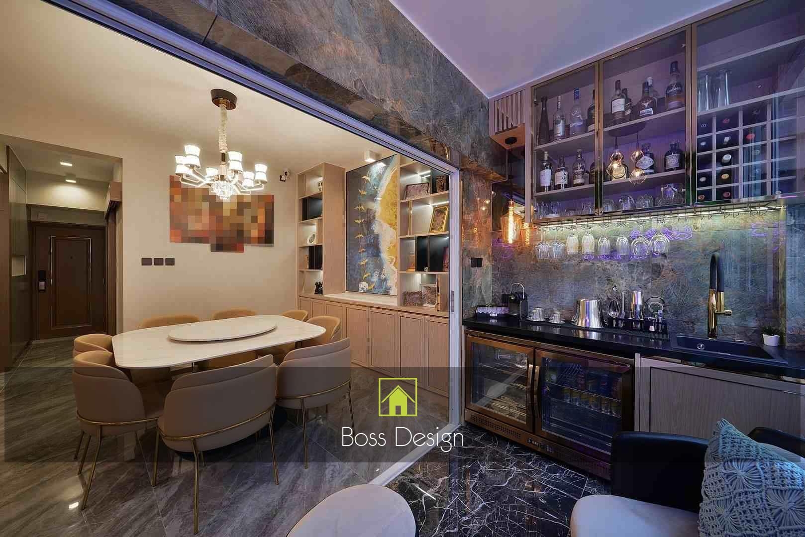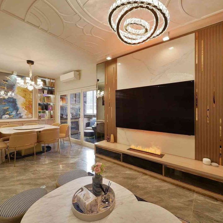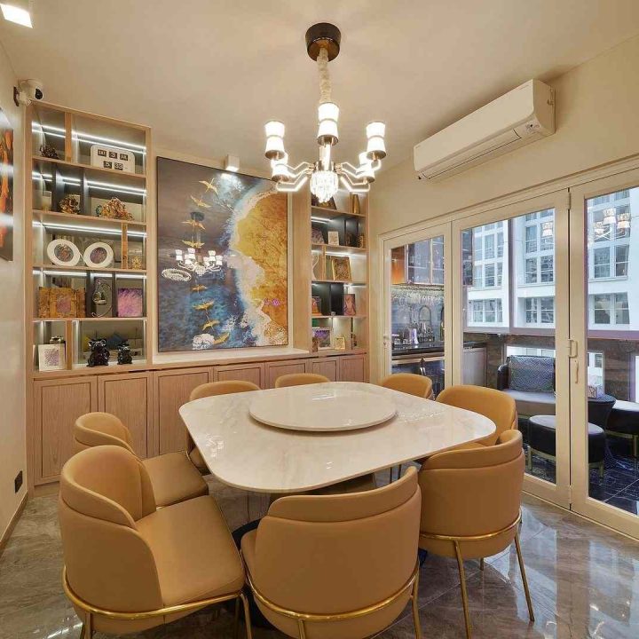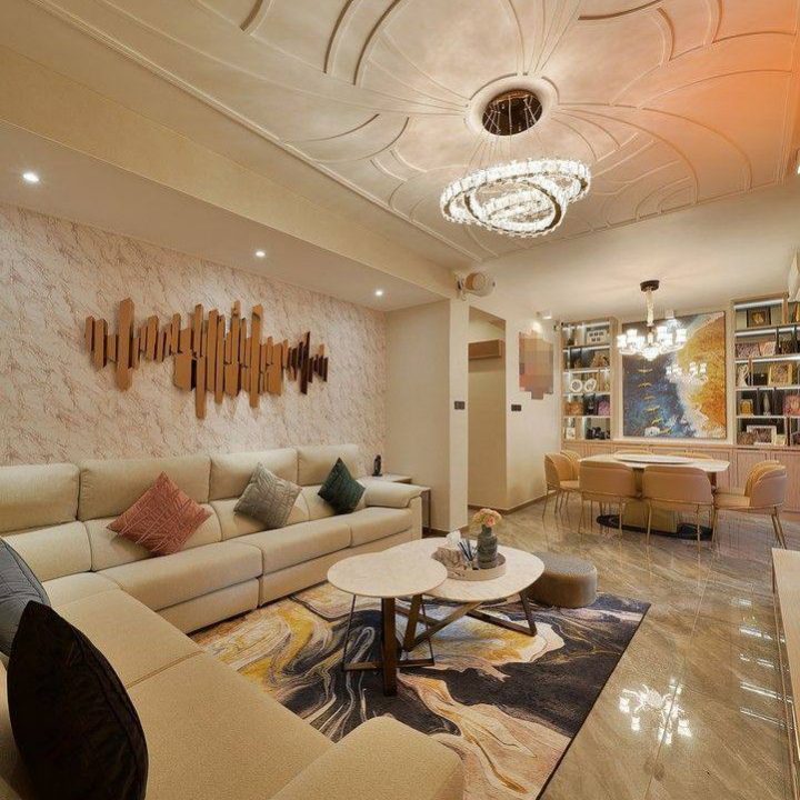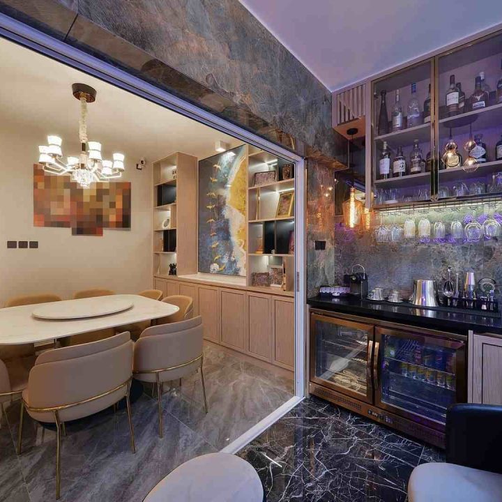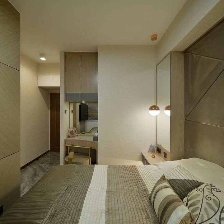 牆體表面的精心設計, 閃耀著緞紋光澤,讓空間盡顯優雅氣質。將大理石的自然色彩與地面的貴重感相結合,地毯與背景牆細節之處的匠心,將現代因素與經典結合起來,再加上高級物料的使用,使得整個佈局充滿了華麗又時髦的格調,顯得俏麗又不失高貴。