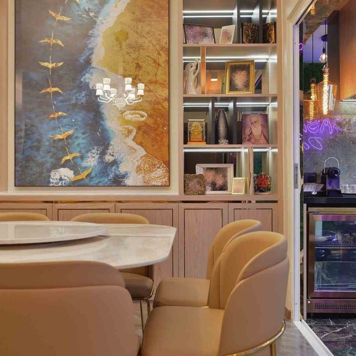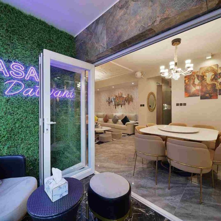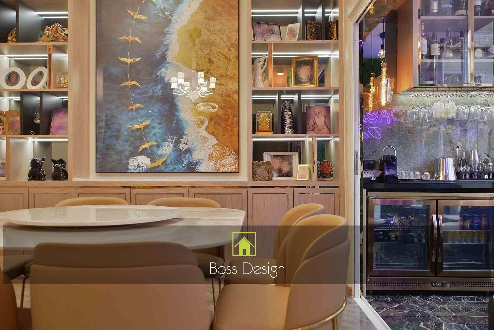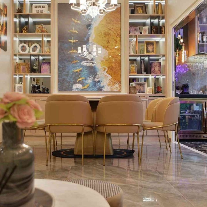 牆體表面的精心設計, 閃耀著緞紋光澤,讓空間盡顯優雅氣質。將大理石的自然色彩與地面的貴重感相結合,地毯與背景牆細節之處的匠心,將現代因素與經典結合起來,再加上高級物料的使用,使得整個佈局充滿了華麗又時髦的格調,顯得俏麗又不失高貴。
