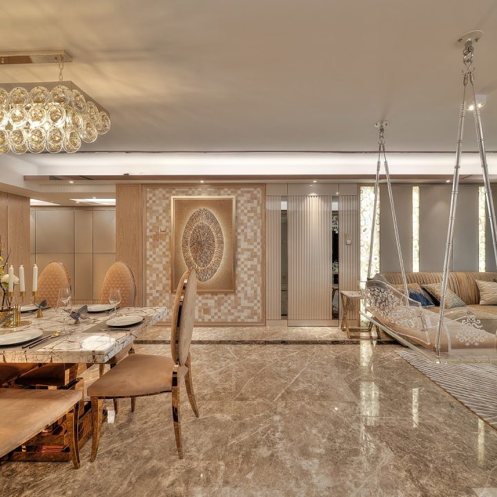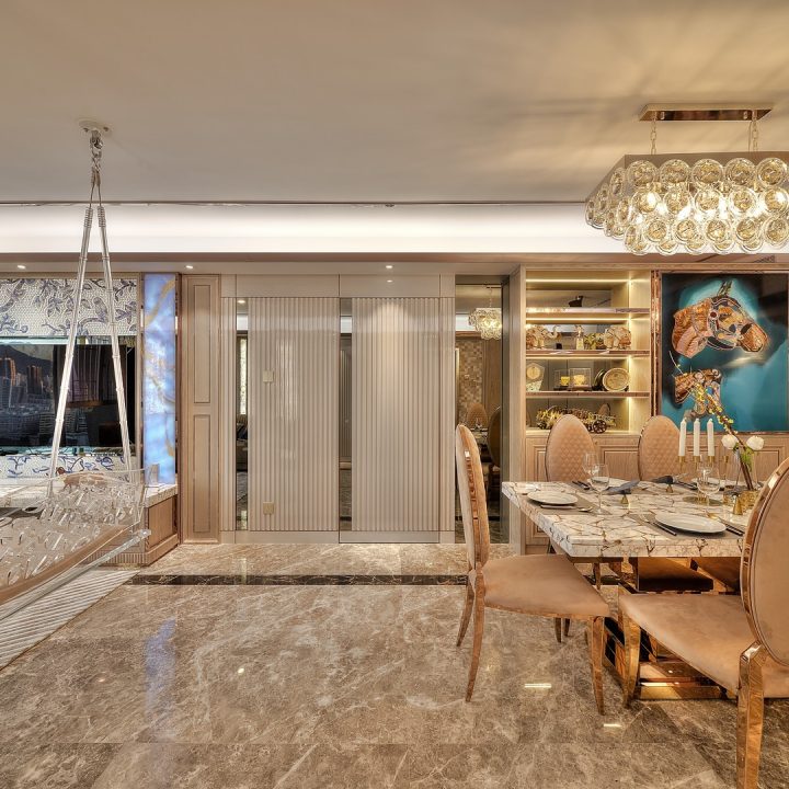 室內設計整體是高級酒店風格,高端大氣,意味深長的裝飾畫搭配精心佈置的明潔吊燈,明亮而柔和的燈光,映照四周,營造出舒適而溫馨的氛圍。簡潔時尚的高級家具,以濃重而不失活潑的色調和自然優美的線條,給予主人豪華舒適的美妙體驗。