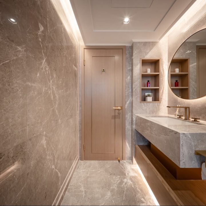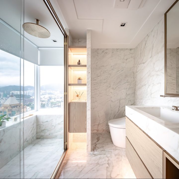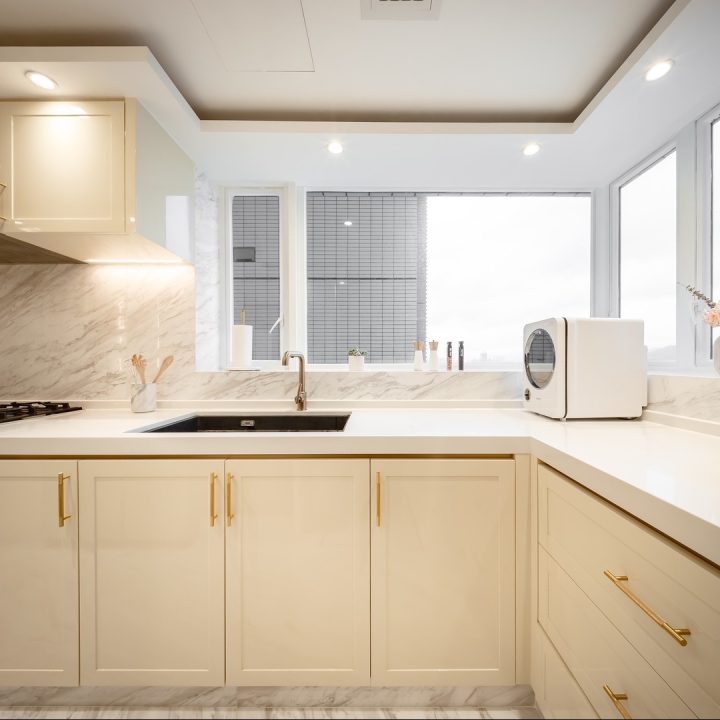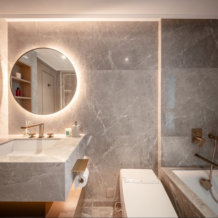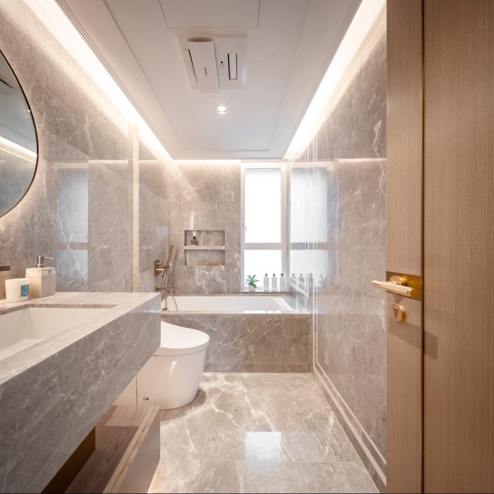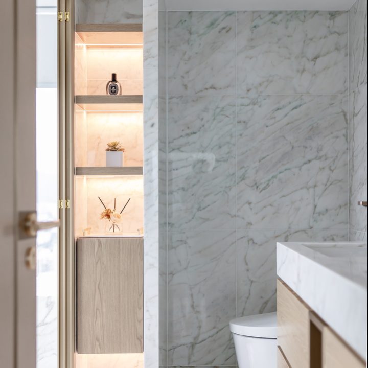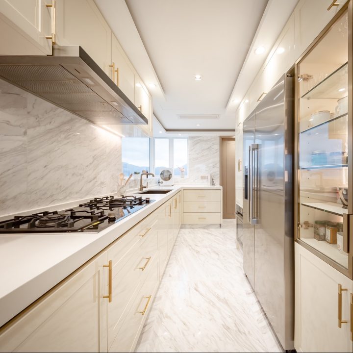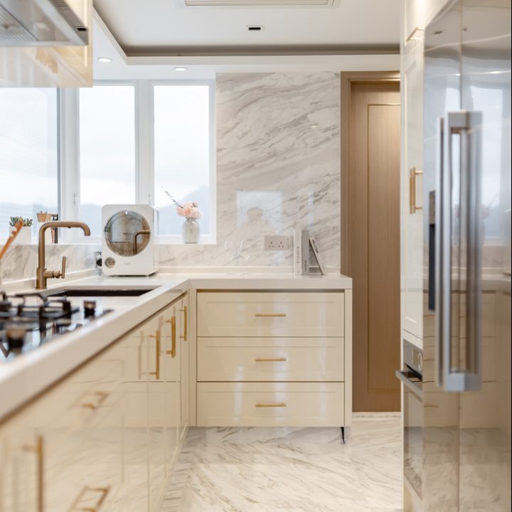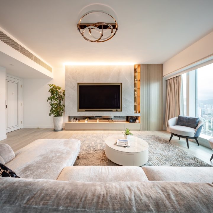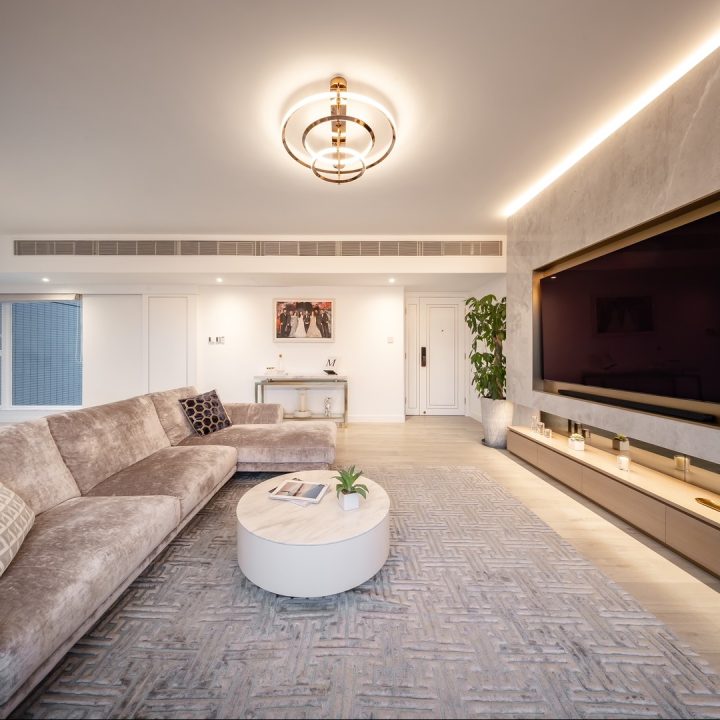 This four-bedroom unit located at Homantin hill, boasts a practical area of 1476 square feet and offers a stunning view of Victoria Harbour. In terms of design, we opted for a minimalist style, avoiding complex decorations and focusing on the use of lighting effects to create a warm and comfortable atmosphere. The interior makes extensive use of high-quality marble and selected wood materials, which, along with the simple design approach, perfectly express a living philosophy that is simple yet stylish. The client is very satisfied with the renovation results, finding it both fashionable and practical.