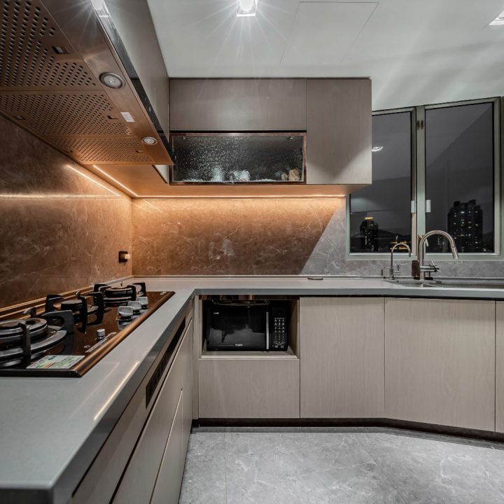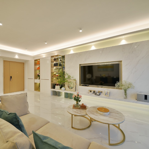 In this 1,321 sq.ft luxury residence at Ho Man Tin Summit, the designer has masterfully blended modern light luxury style with artistic elements to create an ideal living space that balances aesthetics and functionality for the discerning homeowner.
