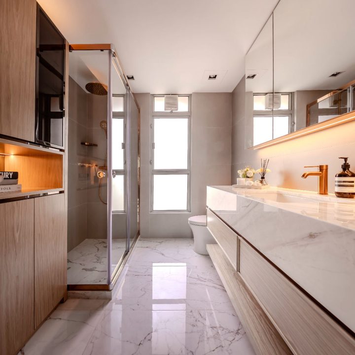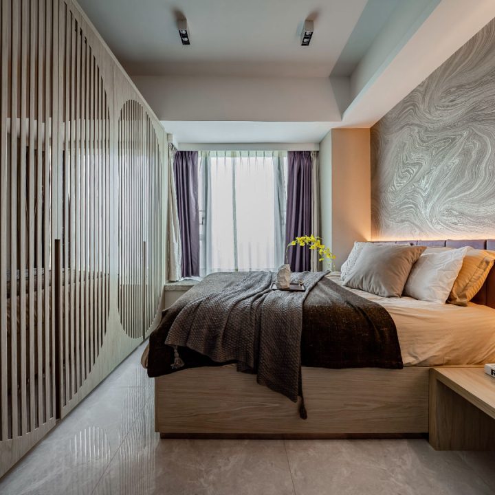 Every detail in this meticulously designed residence has been carefully considered: the contemporary artwork at the end of the hallway, the sculptural wall lights in the bathroom, the hidden smart home system… These elements collectively weave a beautiful vision of modern living. Within 1,321 sq.ft, the designer has successfully fused artistic taste with practical living needs, creating a dream home that is both stylish and warm.