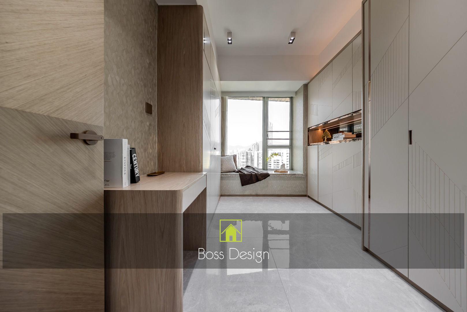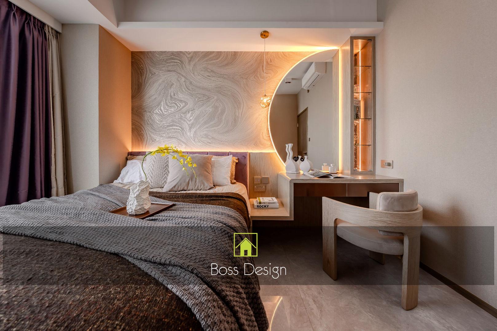 開放式餐廚區延續了客廳的設計語言,大理石餐桌與客廳地面呼應,搭配玫瑰金吊燈,在簡約中透露精緻。廚房採用了隱藏式設計,將現代家電完美融入整體空間,既保持美感又不失實用性。主人套房堪稱設計亮點,床頭那面3D軟包藝術牆採用歐洲進口材質,立體紋理在燈光下呈現迷人的光影變化。步入式衣帽間的全鏡面設計不僅實用,更巧妙地擴大了視覺空間。主衛延續雲石主題,雙洗手台設計搭配玫瑰金五金件,細節處盡顯奢華。女兒房則跳脫主空間的沉穩,以Funky風格展現青春活力。一面牆鋪滿充滿童趣的幾何圖案壁紙,另一面則採用可塗鴉的烤漆玻璃面板,讓空間能隨小主人成長而變化。設計師更在角落設置了閱讀區,搭配造型獨特的燈具,打造出專屬的創意天地。