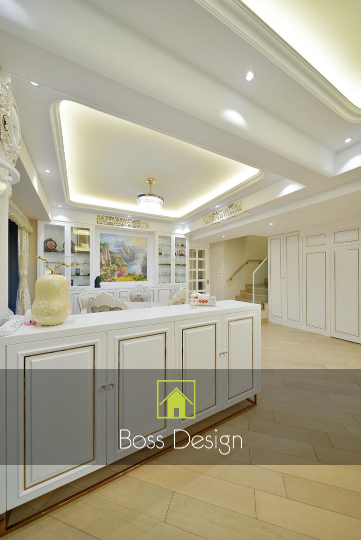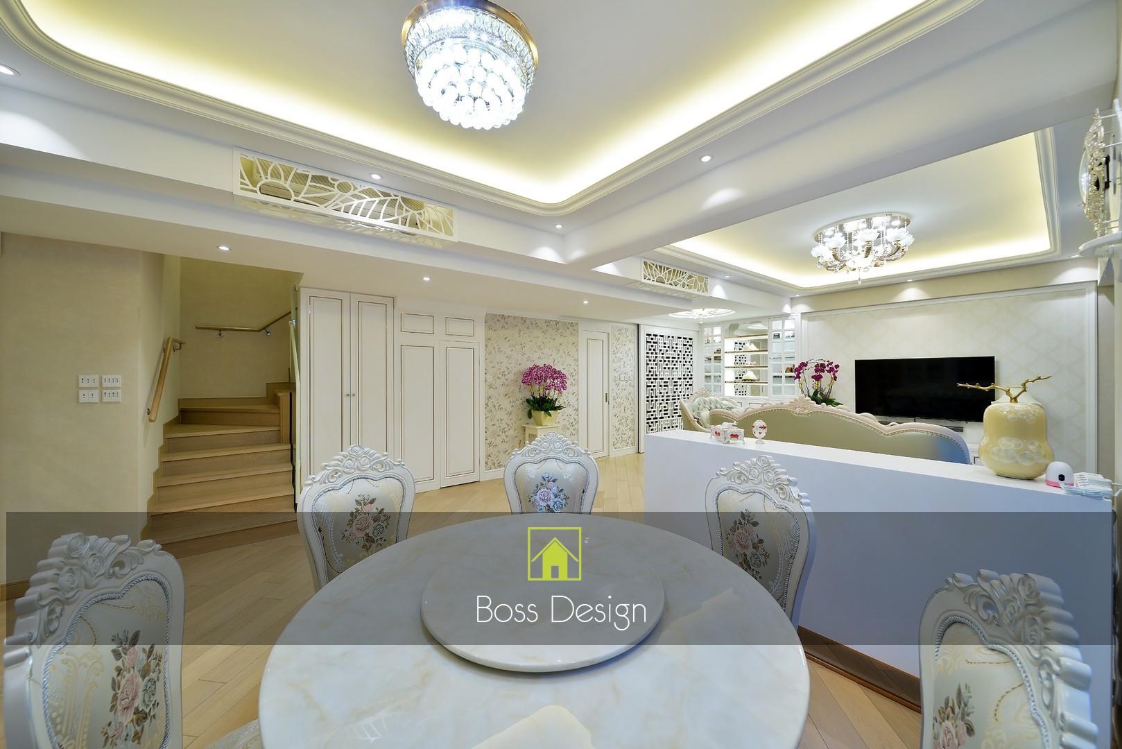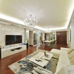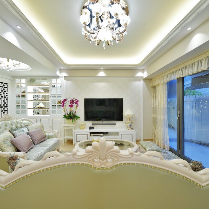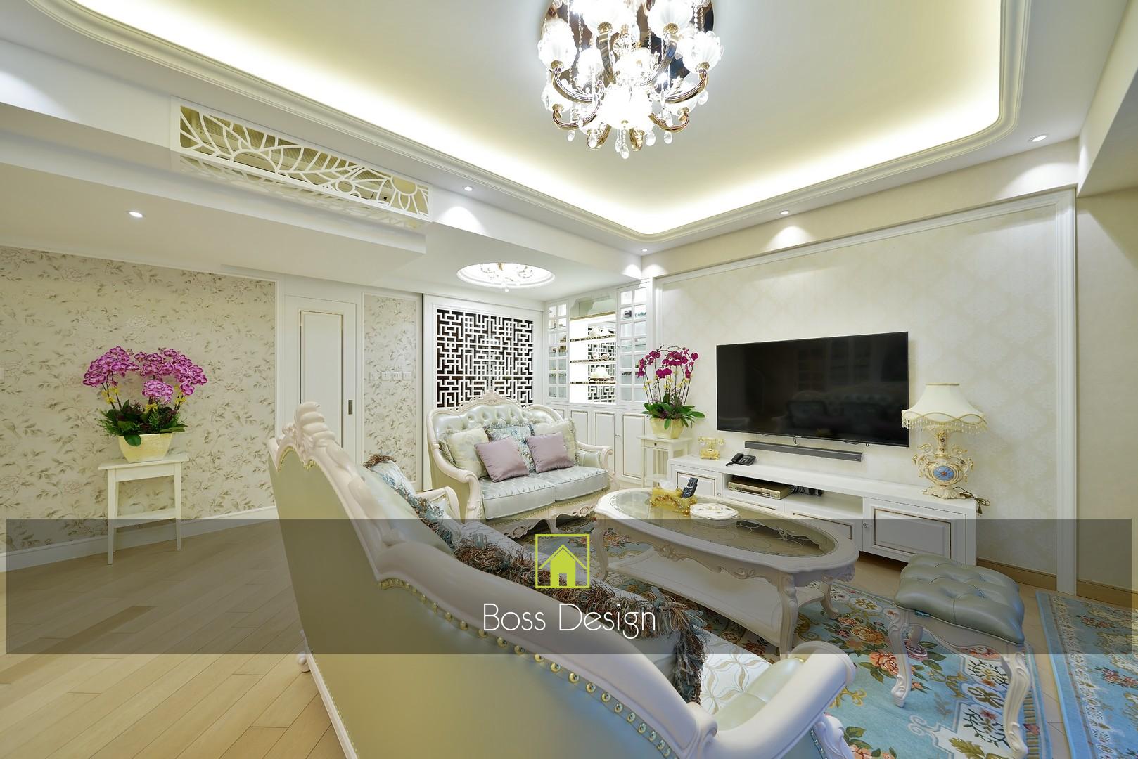 多彩的織物、精美的地毯以及精緻的壁畫,使得整個風格豪華、富麗,在配飾上,黃色和藍色的配飾襯托出古典傢俱的高貴與優雅,賦予古典美感的窗簾和地毯、造型華麗的吊燈使整個空間看起來大方典雅,柔和的淺色花藝還帶來了柔美的氣質。