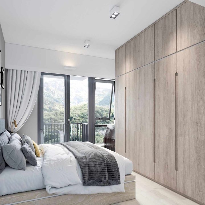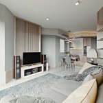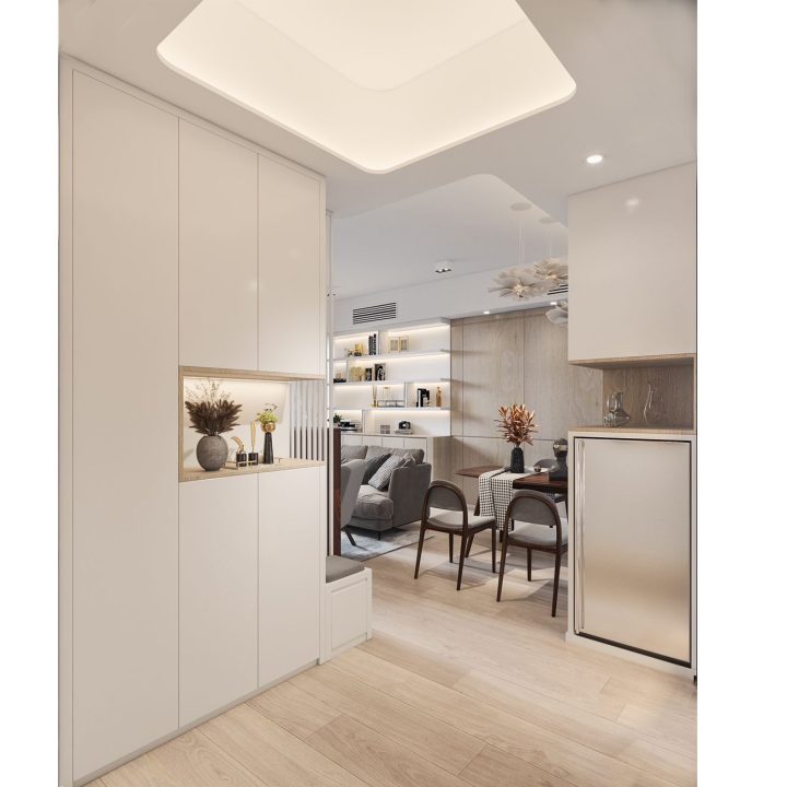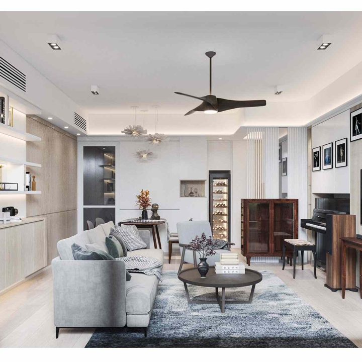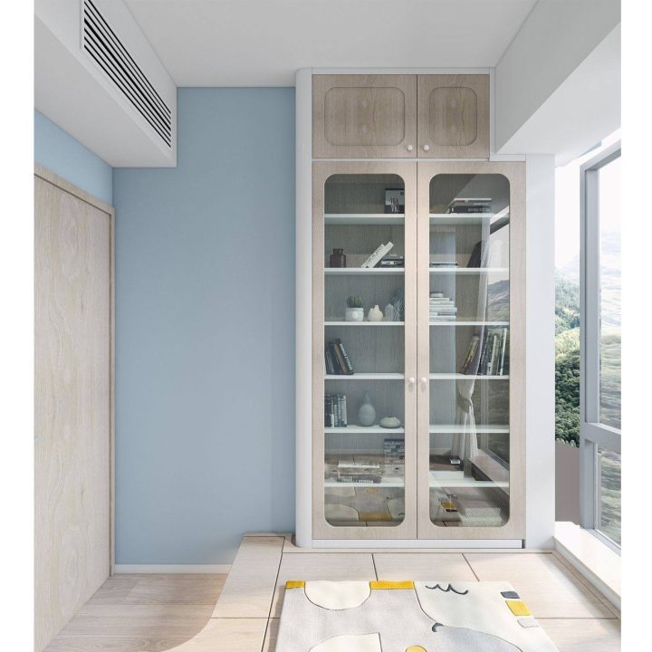 客廳採光自然,非常通透敞亮。木製地板讓空間高貴升級,簡約吊頂勾勒輪廓,空間顯得更加華麗大氣。灰色沙發搭配原木茶几,漸變藍色地毯讓無形的設計延續空間精神,點染空間高顏值的同時,還與藍色門面相呼應,構築了簡潔自然的感覺。