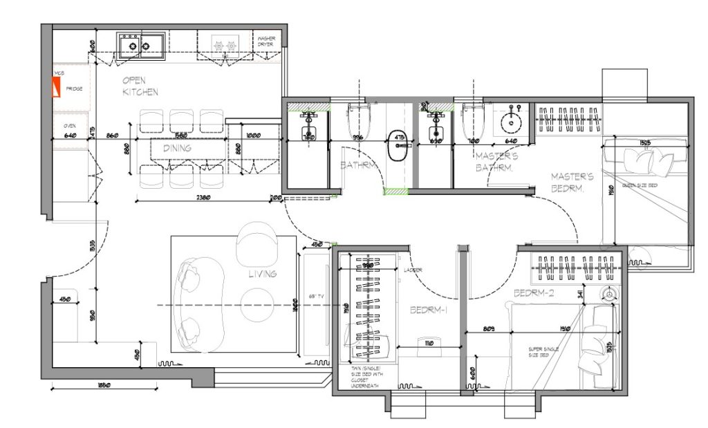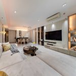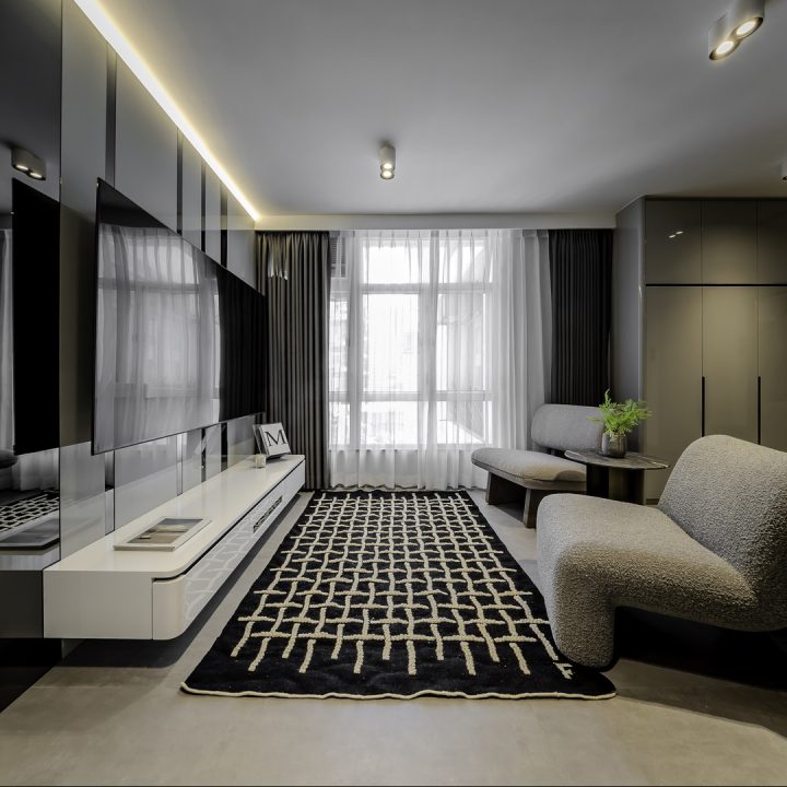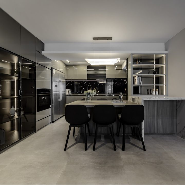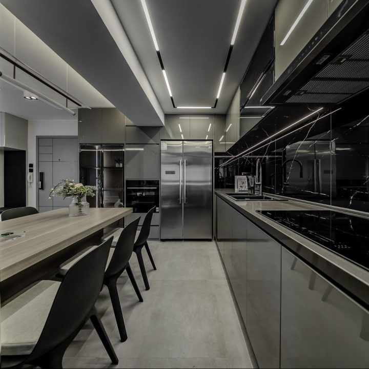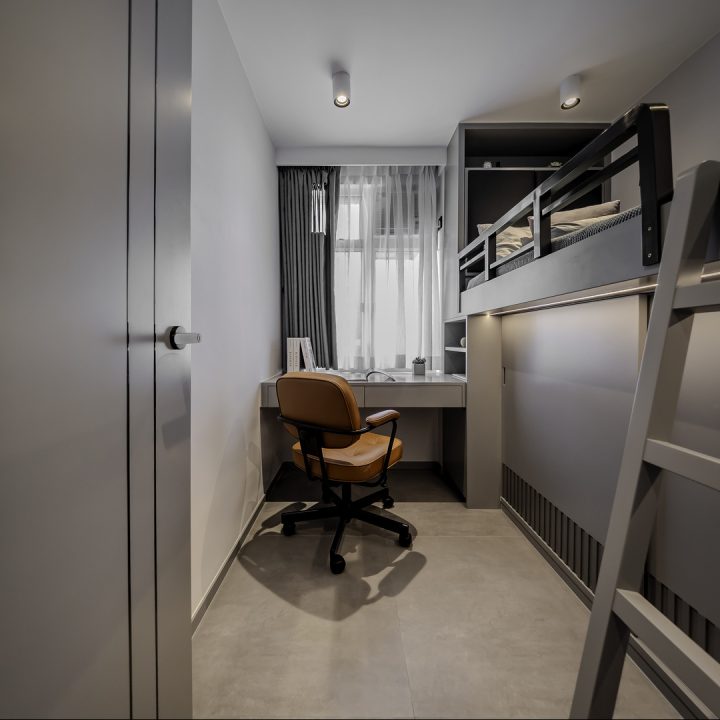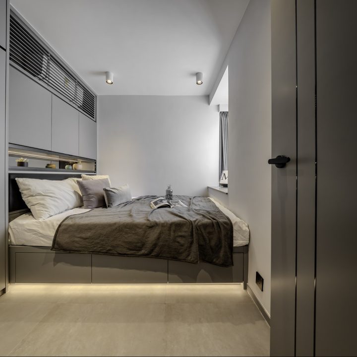 這次為太古城的三房單位設計,客戶希望打造一個時尚簡約的居住空間,並以全灰色作為主調。我們在設計中充分尊重客戶的需求,以灰色為核心,但通過不同材質和深淺度的變化,避免單調感。例如,傢俬採用光面噴漆,呈現現代感;地台鋪設水泥灰色磁磚,增添質感;牆身則選用極淺灰色油漆,營造柔和氛圍。同時,我們巧妙地加入黑色元素作為對比,如黑色不鏽鋼和黑色雲石瓷磚,提升空間的層次與視覺張力。