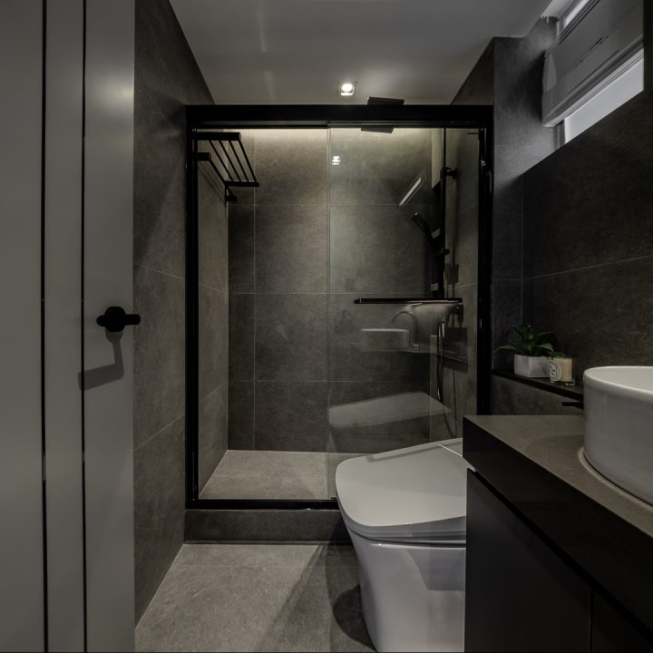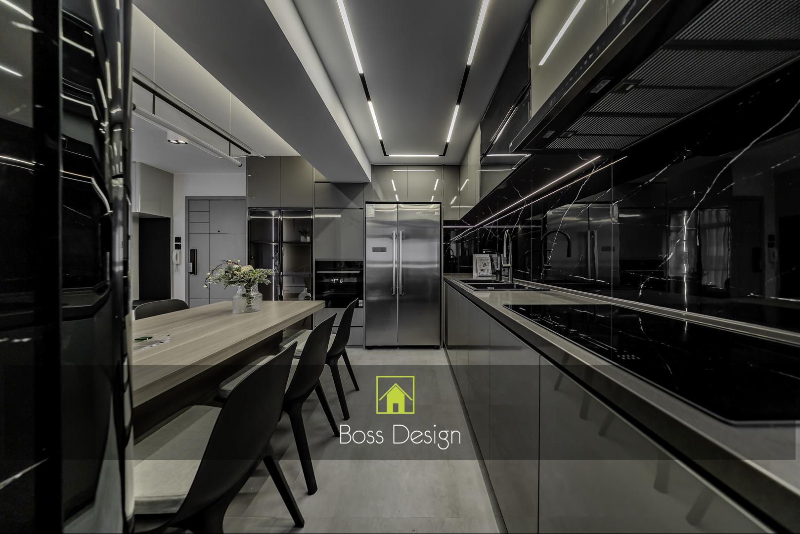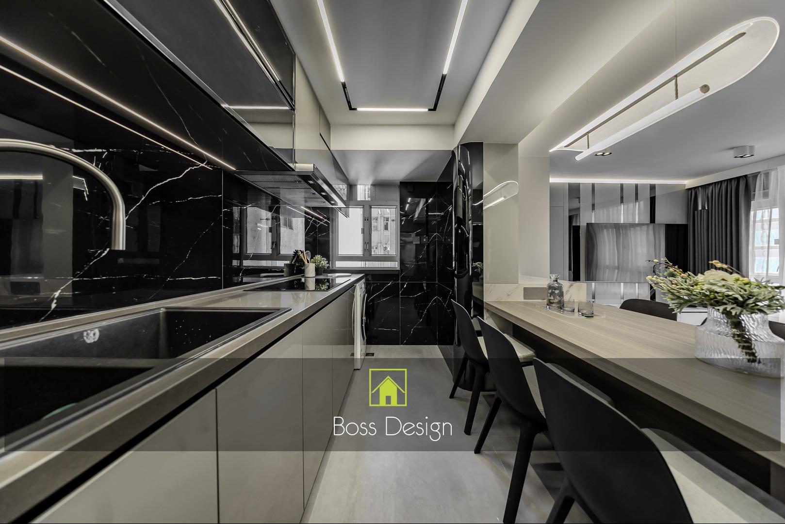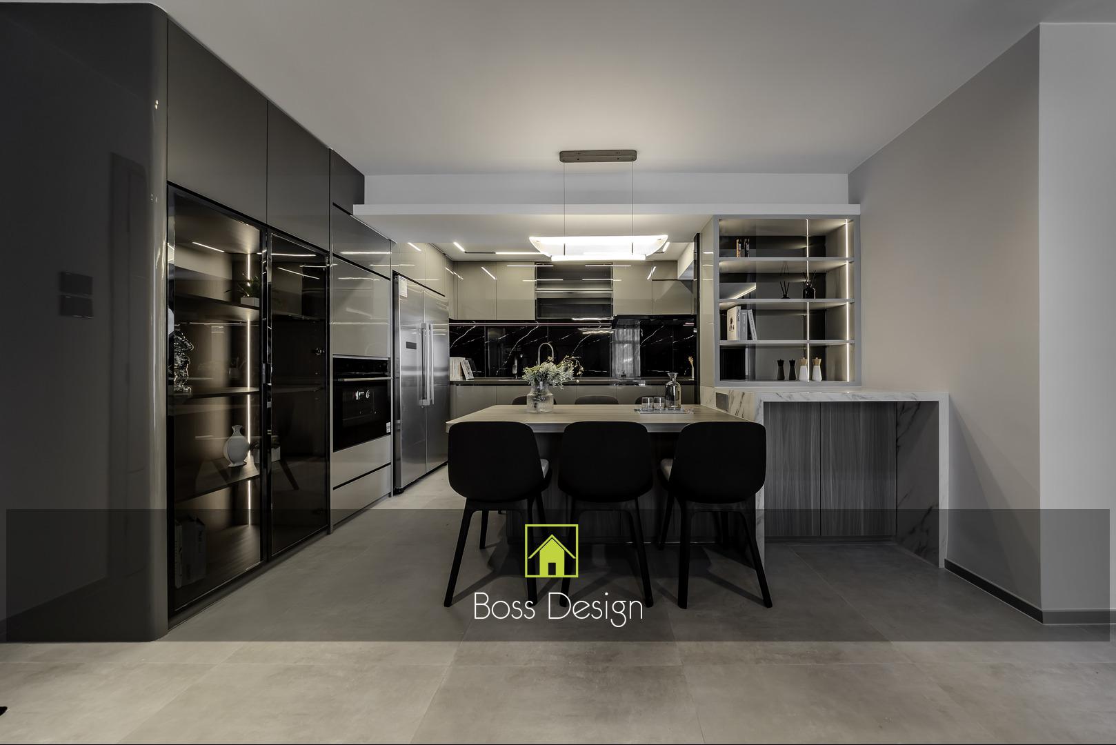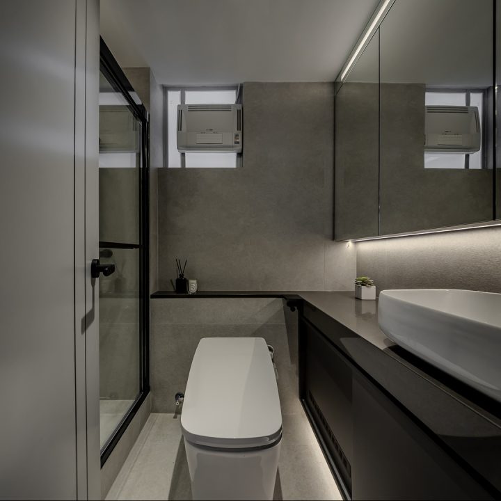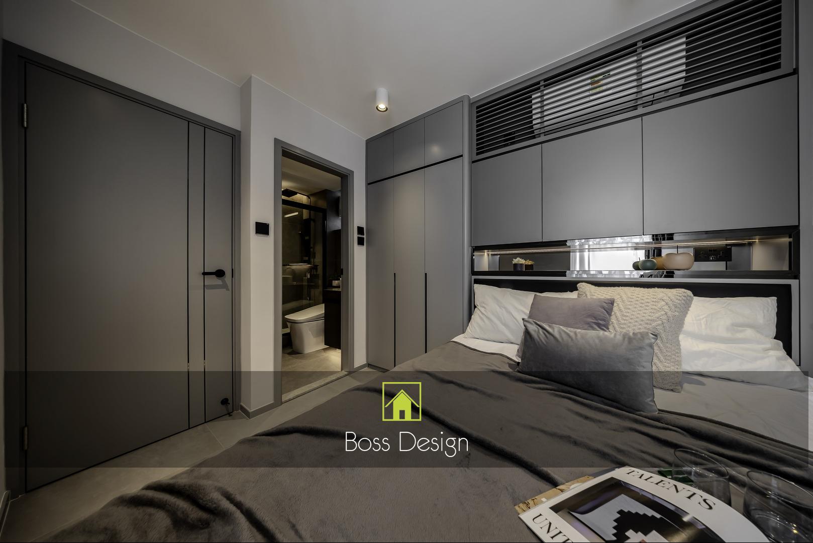 燈光設計上,我們採用3000K色溫,營造溫暖舒適的氛圍,並在天花均勻分布盒仔燈,打造出類似攝影棚的效果,既美觀又實用。整體設計雖然以灰色為主,但通過深淺變化和黑色點綴,呈現出自然和諧的效果,完美契合屋主年輕才俊的品味。這個空間不僅時尚簡約,更充滿現代感,為客戶一家三口提供了一個舒適而富有格調的家居環境。