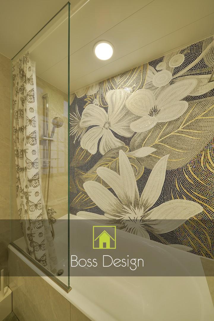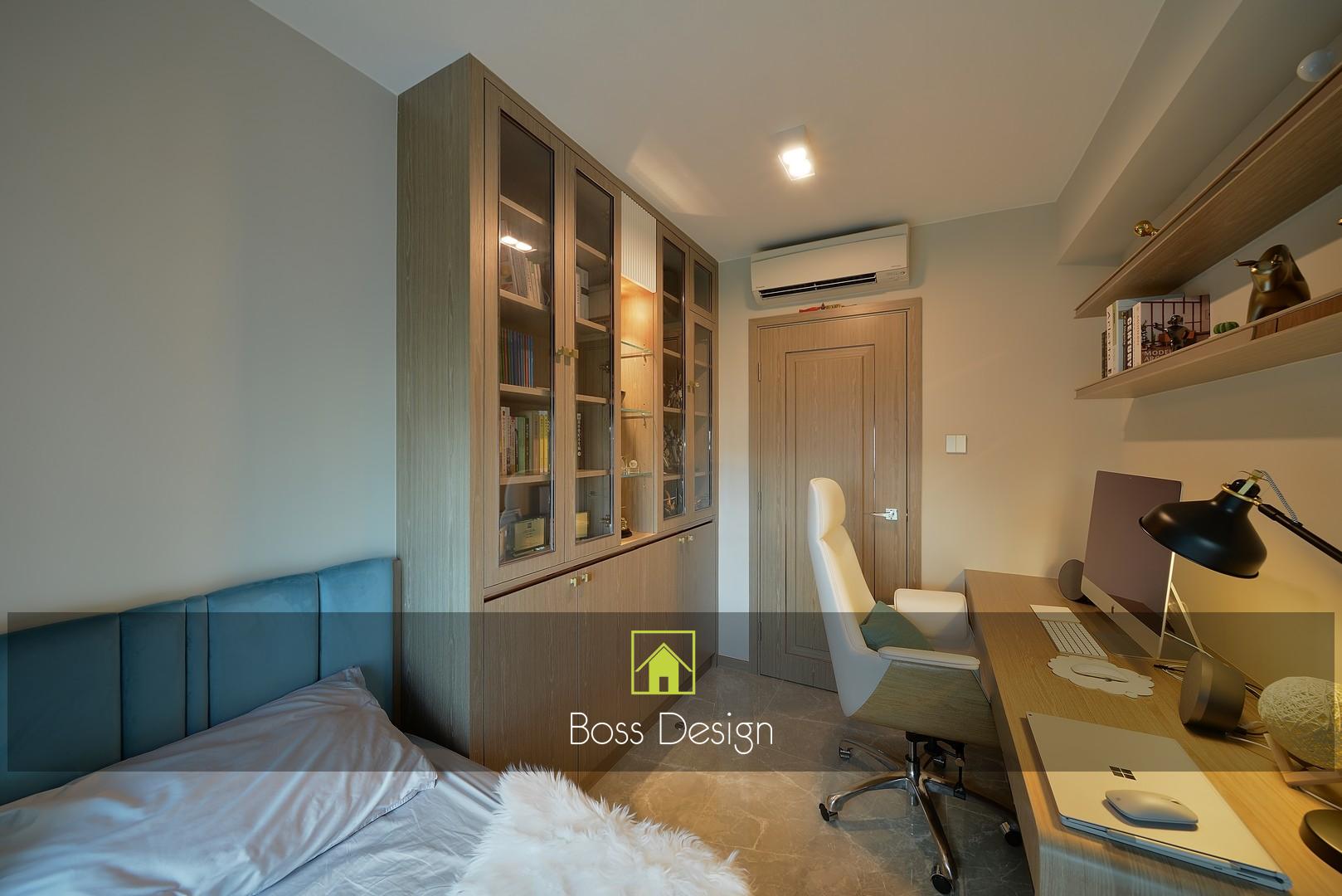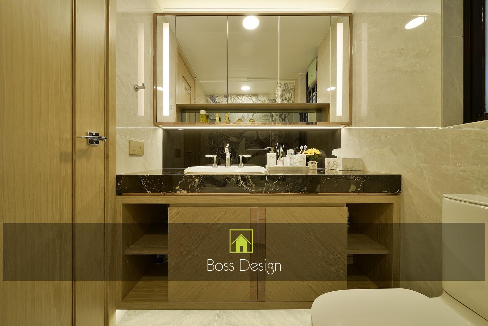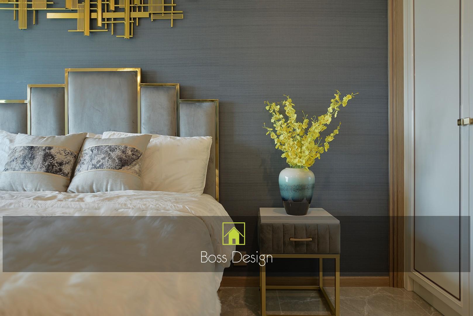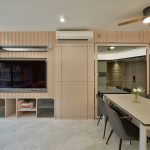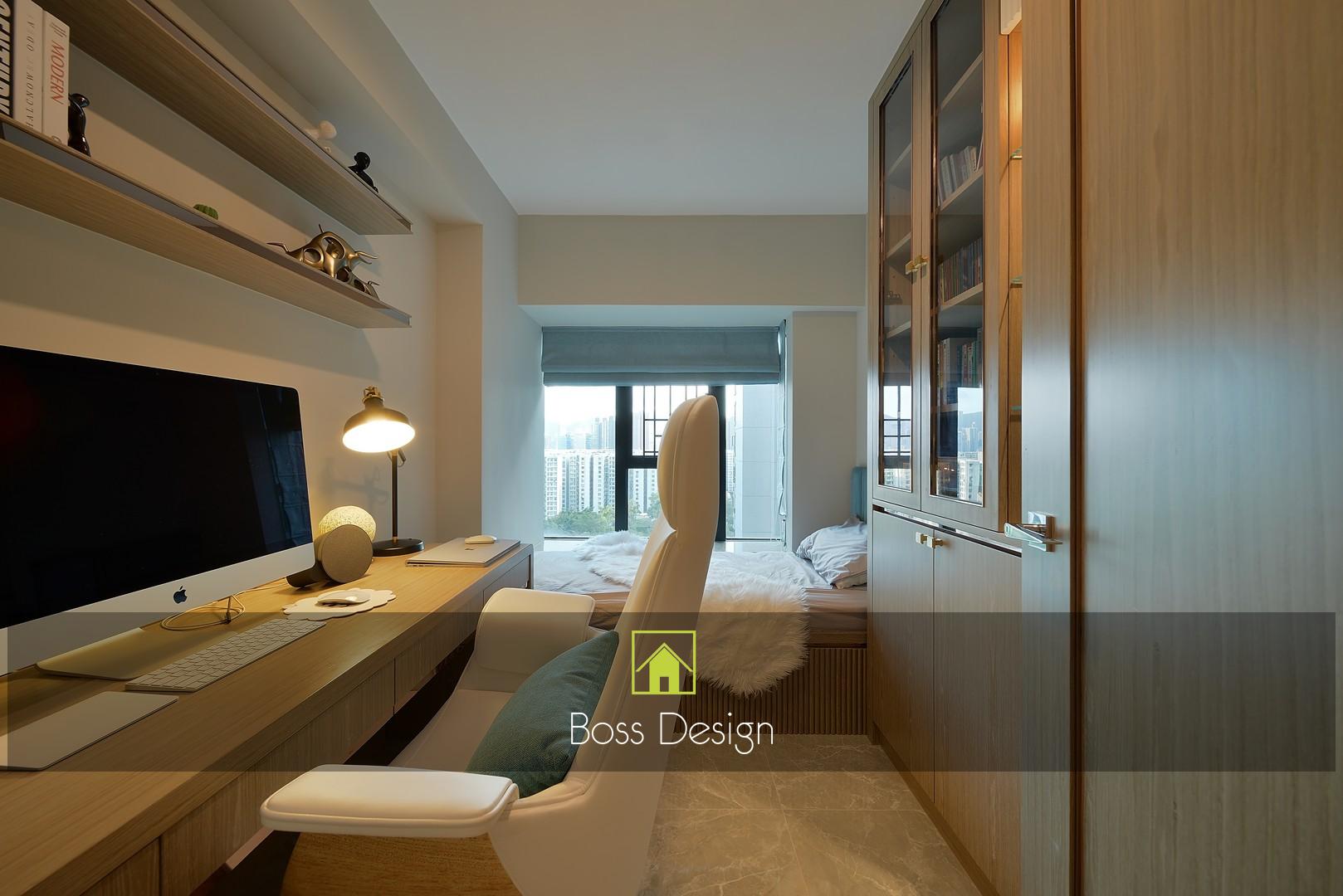 整個空間為現代簡約的設計,大面積的落地窗,為客廳提供了充足的採光,佈置現代簡約的沙發以及柔和燈光下的廚房,營造出了一個舒適明亮的空間氛圍。木質家居,再加以大理石地板,與電視櫃連成一體,營造出一種現代簡雅的高級設計感。