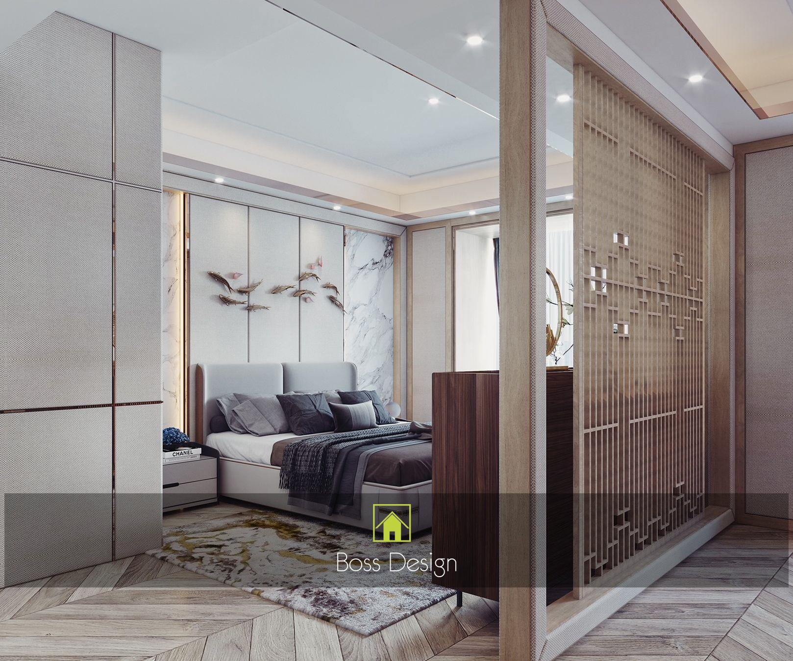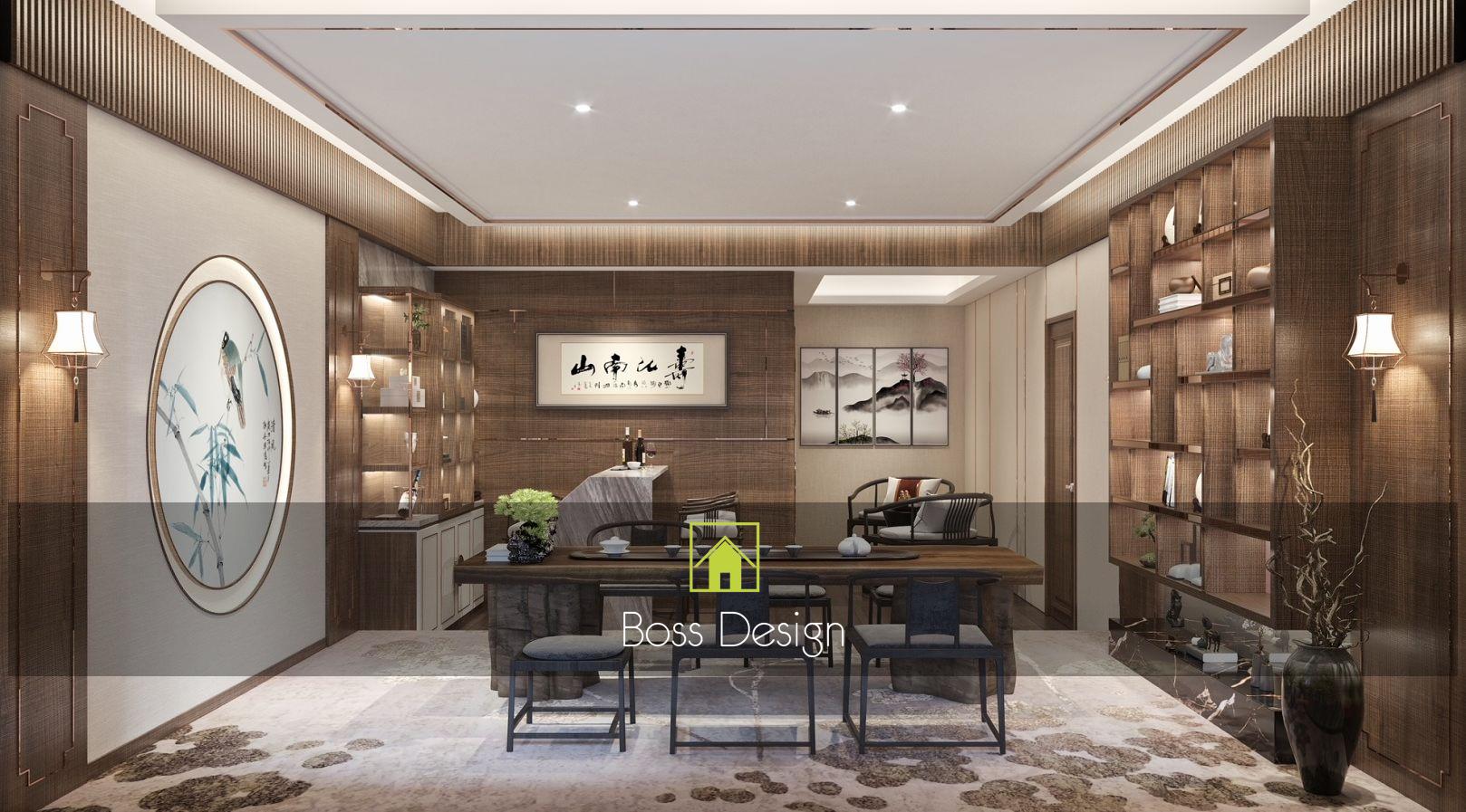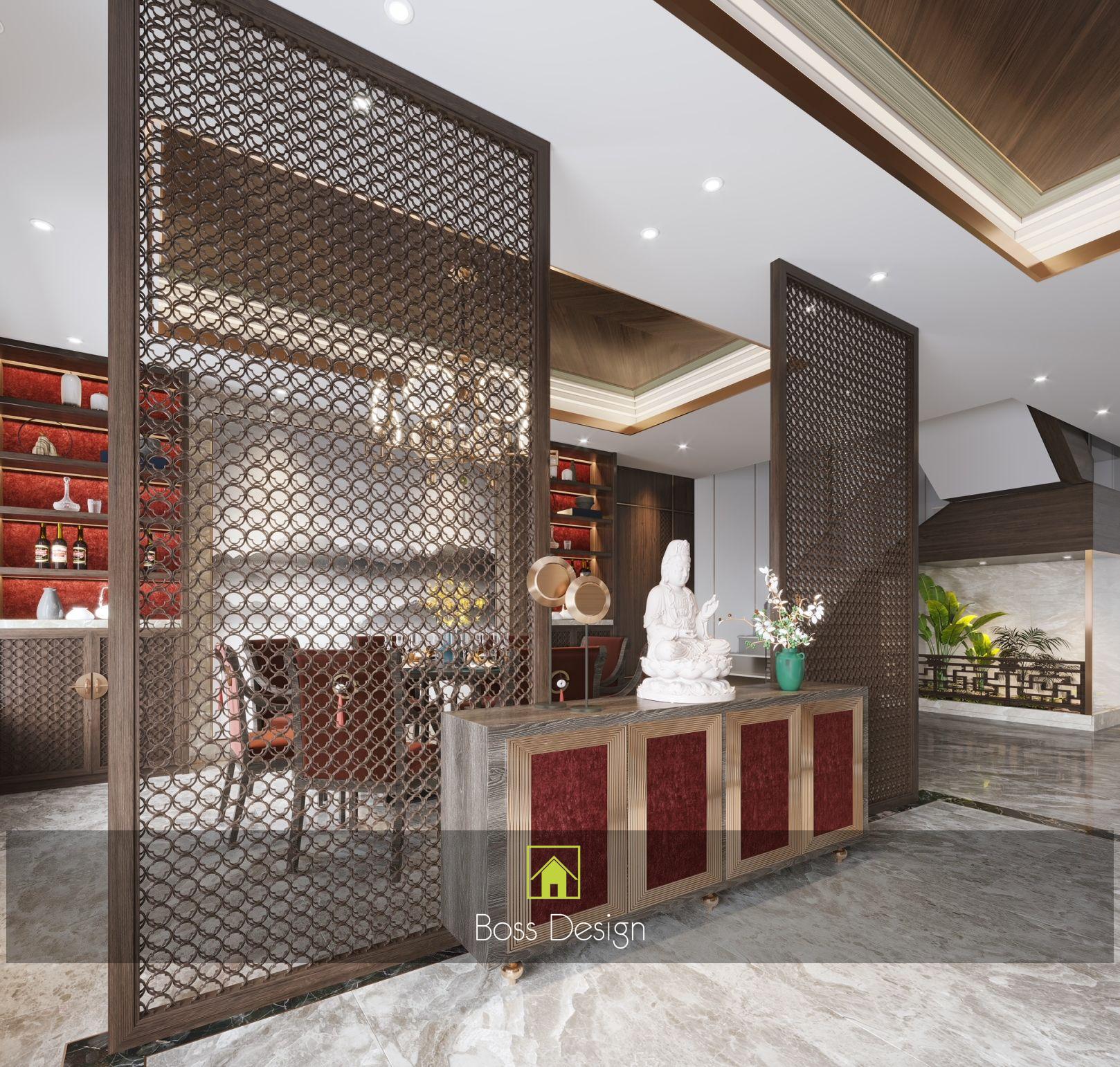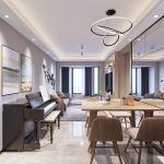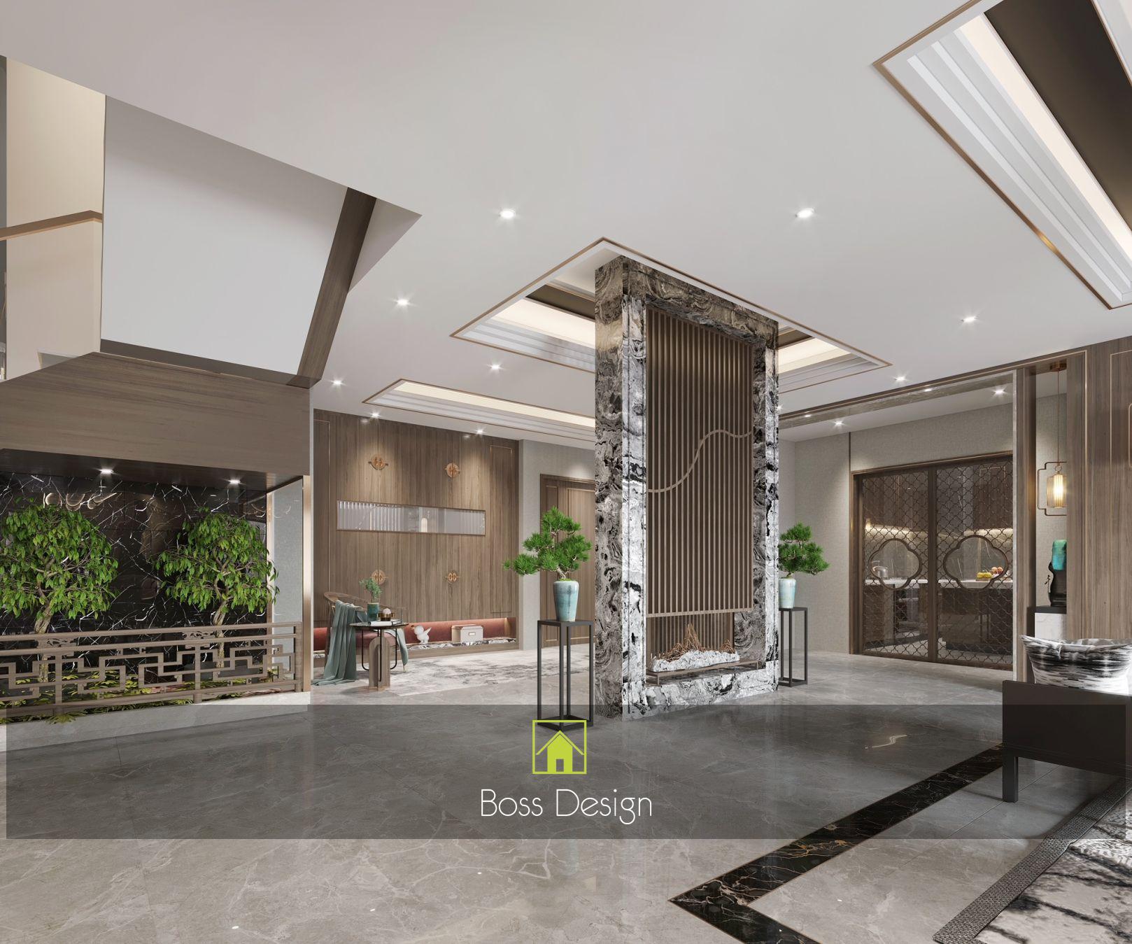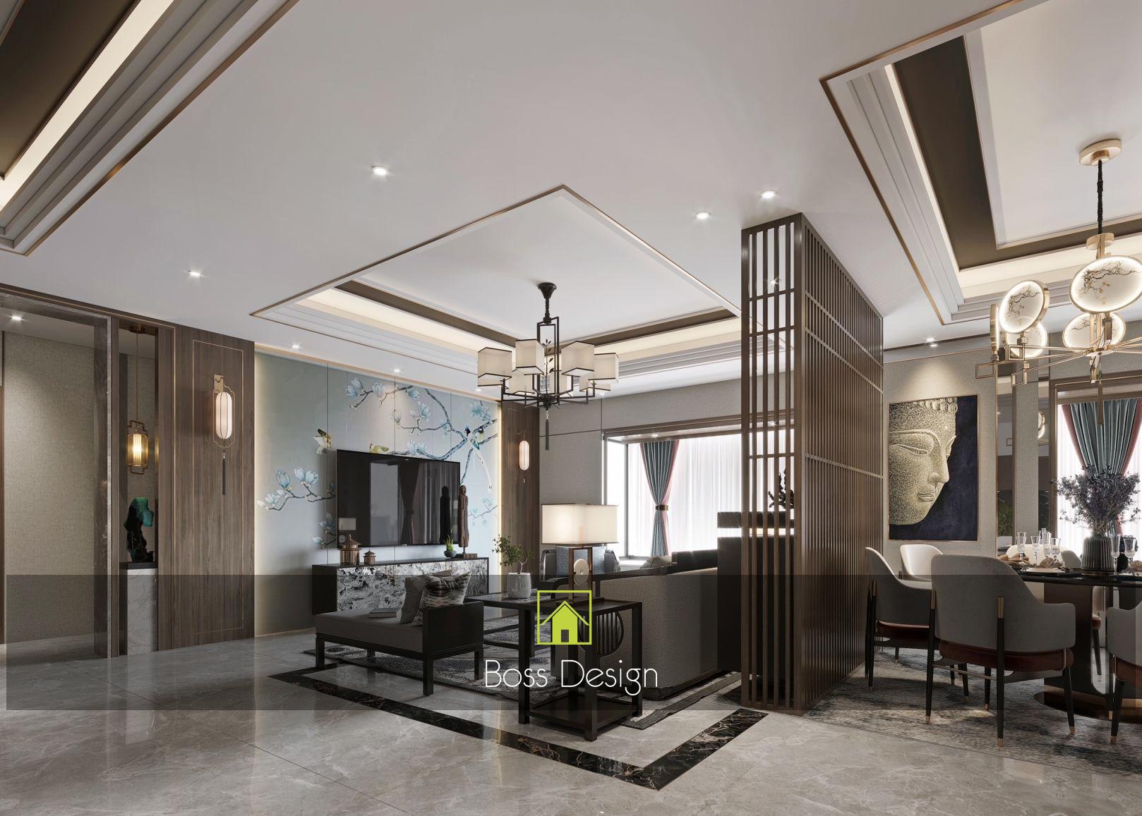 住宅空間大氣之中透露著簡約優雅。裝修選用頗具質感的瑰麗板+古香古色的中式家具,空間質樸端莊,低調奢華,美在神韻與內涵。牆面的木質輪廓與白色空間的反差,強調了結構與空間的立體感。不僅舒適,而且優雅,精美的隔斷與中式吊燈,都令整個空間不落俗套。