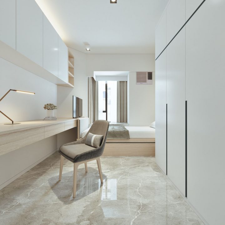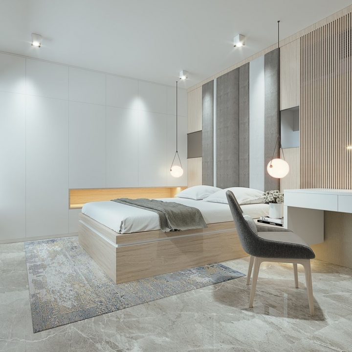 隨處可見的不是柔和的暖白,就是原木的溫潤,整體空間乾淨、優雅而純粹,質樸溫暖的實木儲物櫃搭配深色櫃門,光影又給空間增加質感搭配上幾樣中性色調的家具,凸顯出沉穩、低調的生活品味。不僅在感官上給人清新自然的舒適感,讓空間顯得更加開敞,表現出實用性的同時又有溫馨的居家氛圍